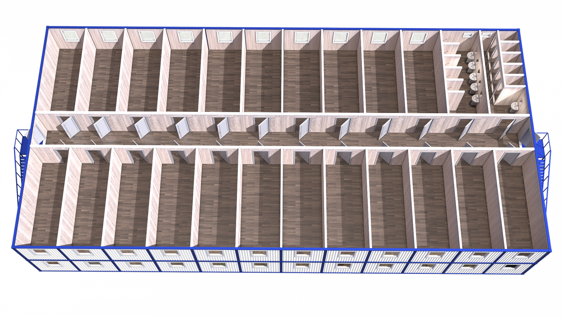Раковина с пьедесталом – 6 шт. Зеркало – 6 шт. Унитаз компакт с перегородкой – 10 шт. Душевой поддон с лейкой и перегородок- 10 шт. ХВС и ГВС – централизованное. Вывод канализации со стороны унитазов либо по согласованию. |